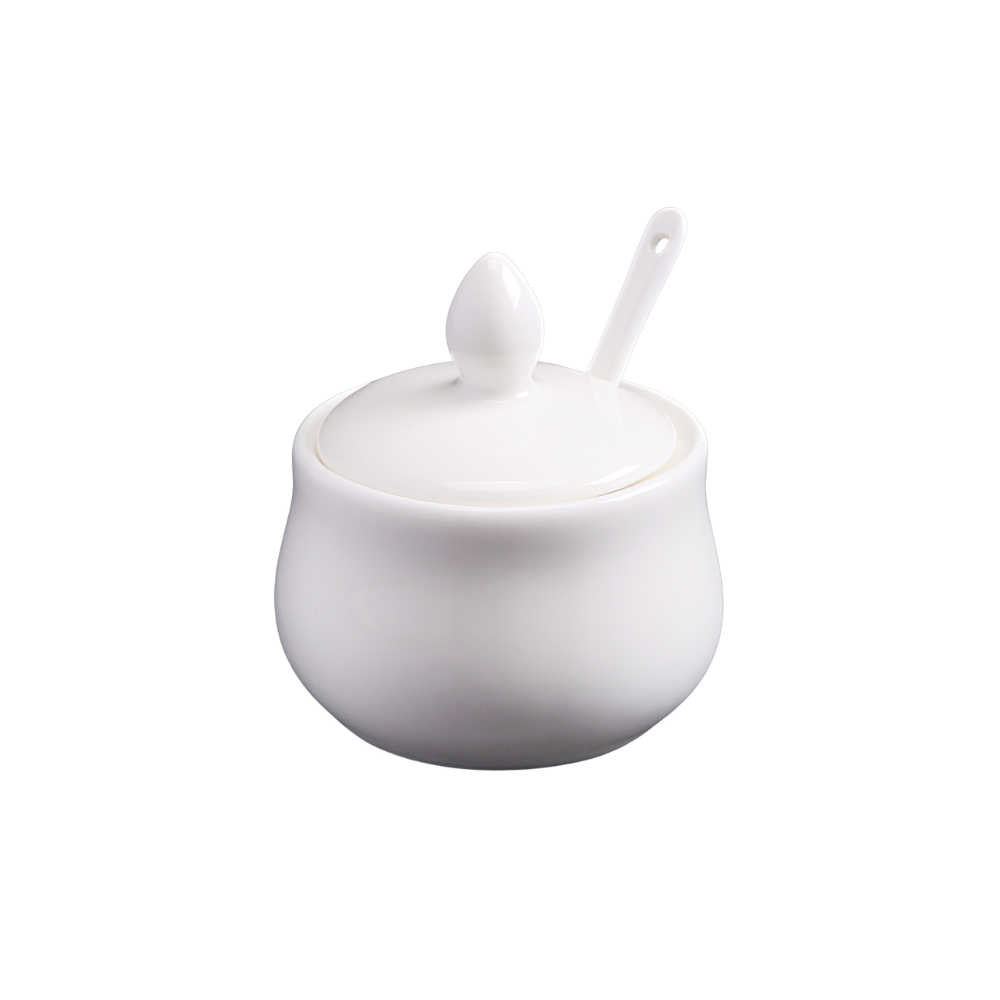 FINE CHINA 4 OZ | 130 ML MUSTARD POT WITH SPOON - WHITE - DON BELLINI # DB306MP13