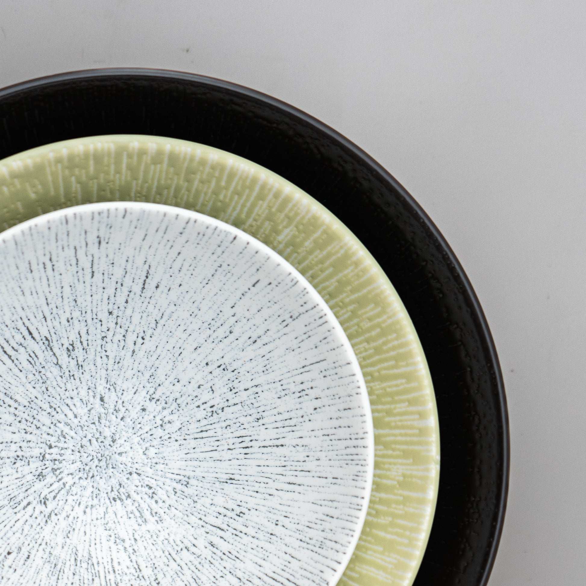 The Linea collection offers a stylish selection of porcelain pieces in three refined colours: Noir, Blanc & Pale Green. Each piece features a semi-matte glaze that enhances its modern look with a unique line print design. These intricate designs, applied using the Pad Printing technique, create a pleasing blend of texture and form. Ideal for both restaurant and home use, this collection caters to those who appreciate subtle details and quality in their tableware.