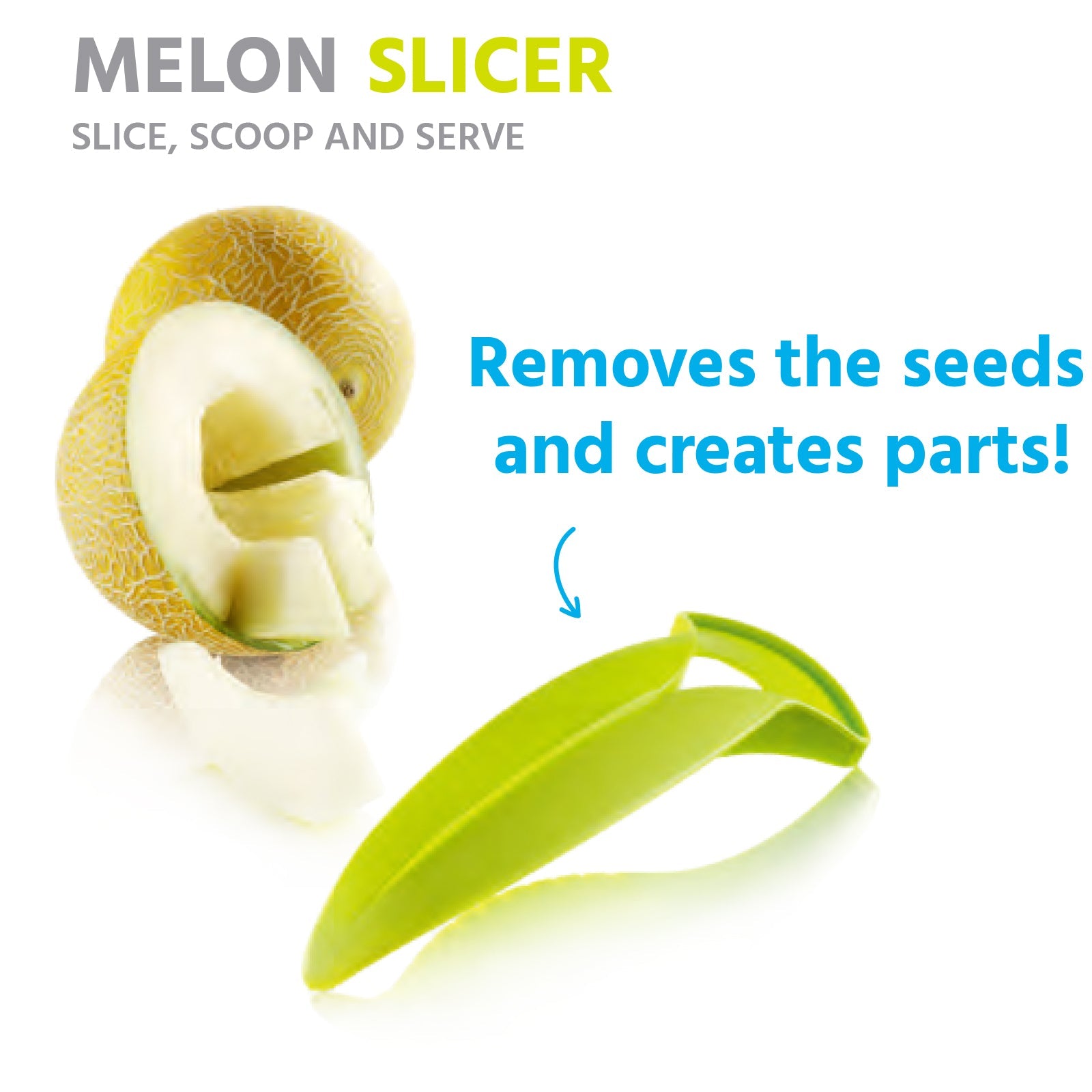 With the Melon Slicer you can quickly and easily cut the melon into halves, scoop out the seeds and take out ready to eat slices. This tool is a real time saver when preparing melon for your fruit salad or just as a healthy snack.