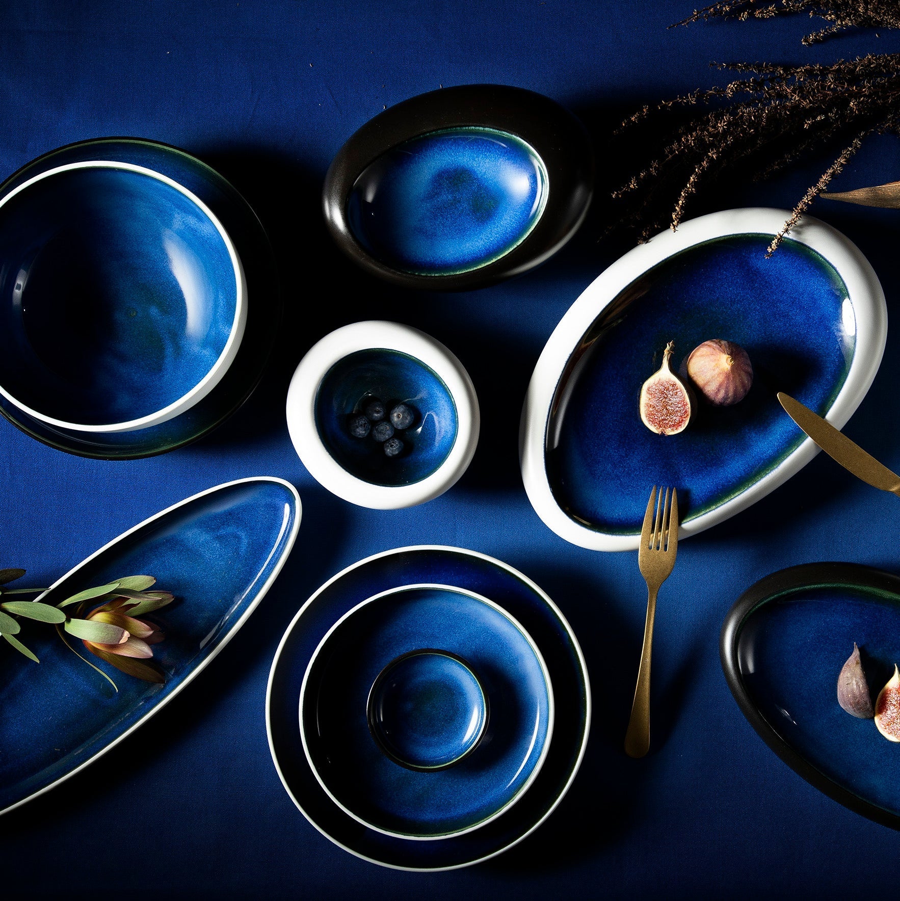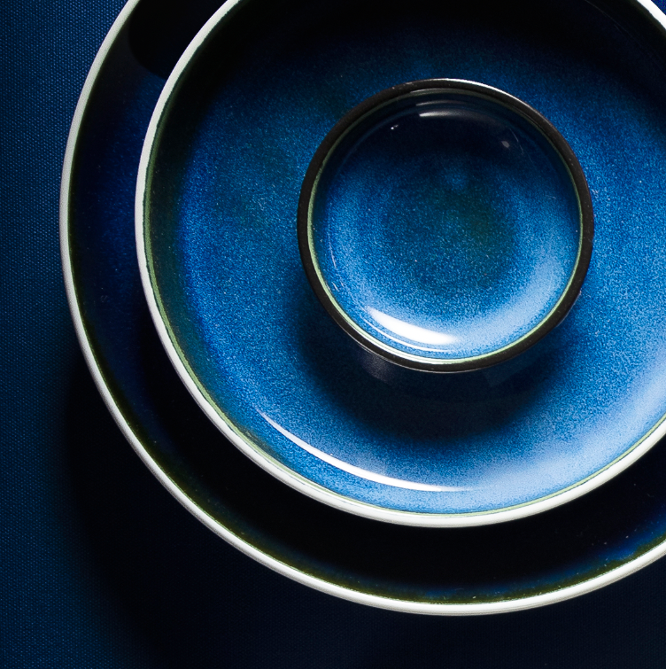 Shiny ocean blue reactive glaze on inner surface with a contrasting matte monochrome